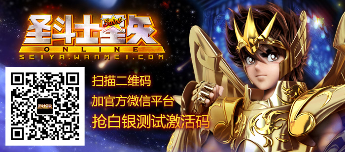 《圣斗士星矢》将于2013年3月开启白银测试。《圣斗士星矢》官方微信平台(官方微信号:wanmeiseiya)于今日(2013年2月28日)率先开启白银测试激活码每日大放送活动。关注官方微信平台,即可参与活动,并有机会获得白银测试激活码。