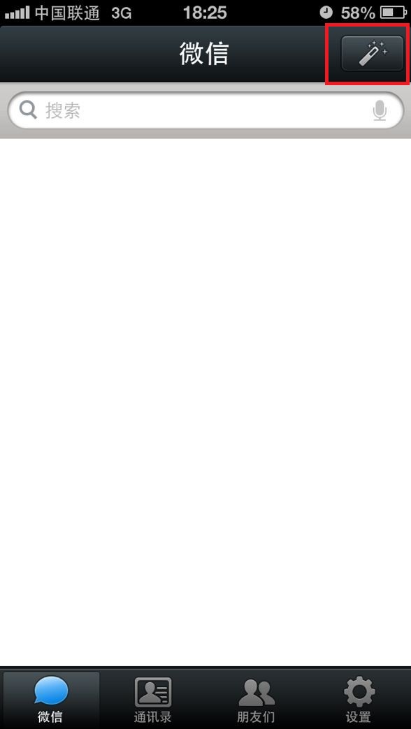 (图2:打开微信,点击右上角“仙女棒”图标)