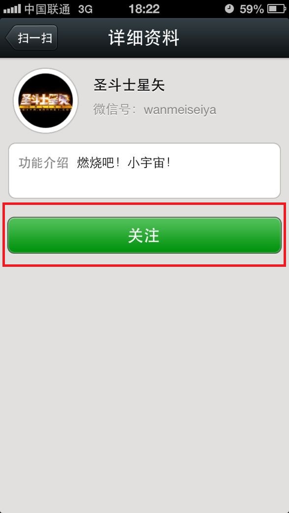 (图4:扫描完成后,点击关注,加入平台)